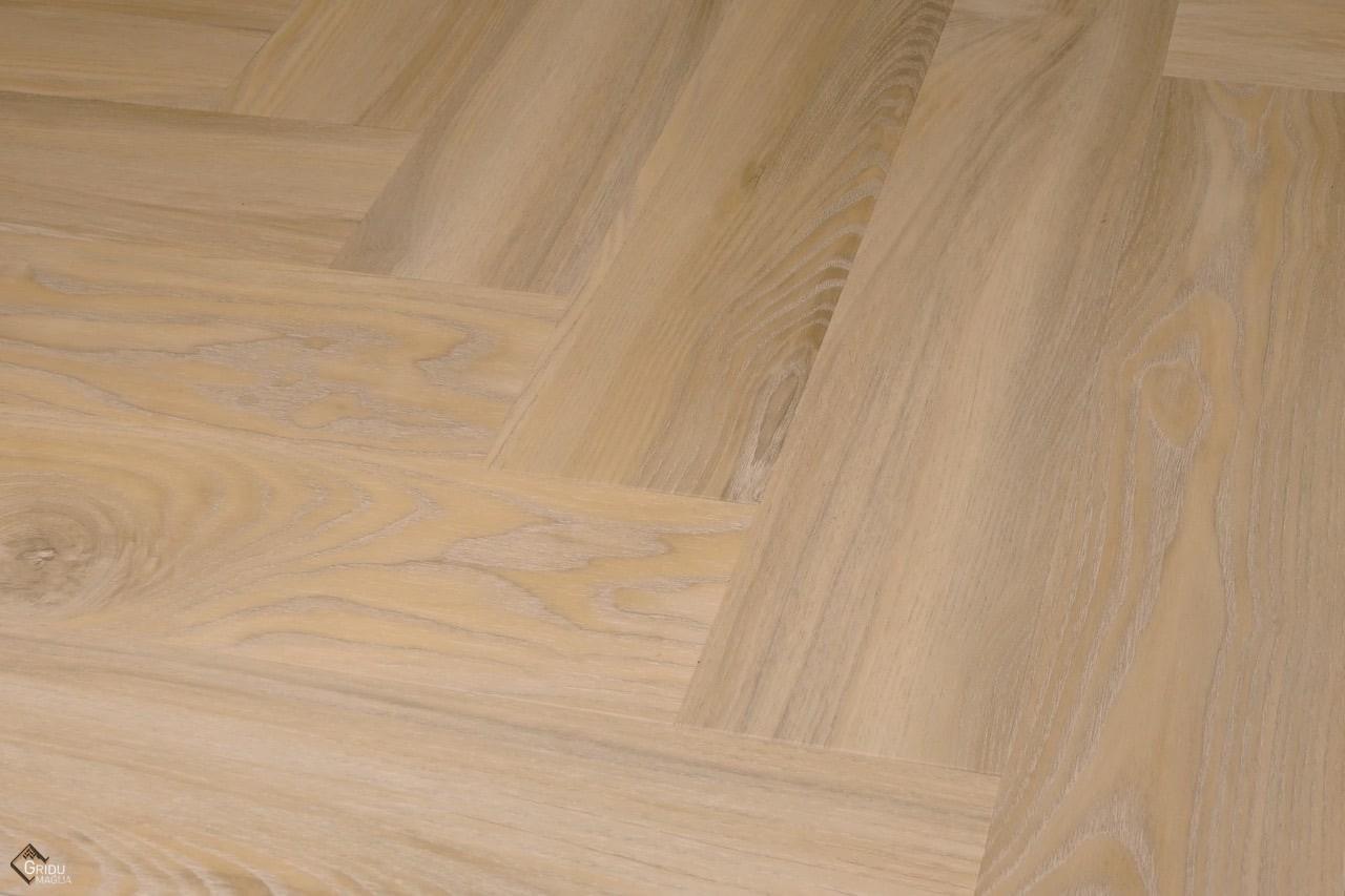 Kvarcvinylgolv med hög slitstyrka, vattentätt, med fasade kanter, med en speciell ljudisolerande undersida som ger komfort och effektiv värmeledning.