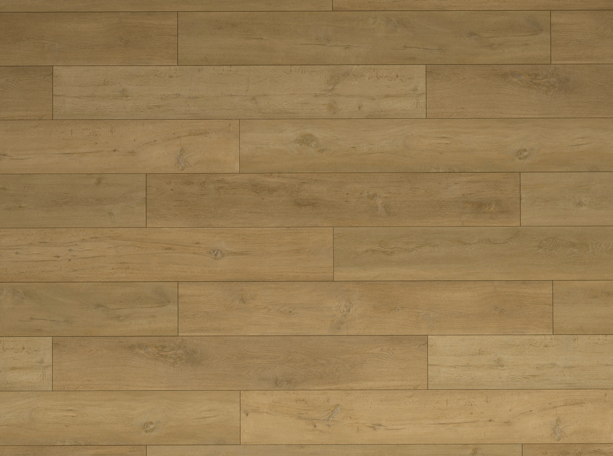 Kvarcvinylgolv med hög slitstyrka, vattentätt, med fasade kanter, med en speciell ljudisolerande undersida som ger komfort och effektiv värmeledning.
