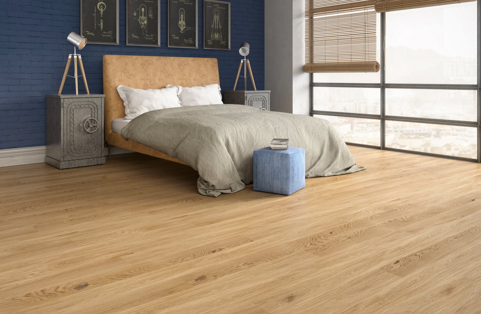 3-skikts ekparkett, enstavig bräda, mattlackad, borstad, Cottage-kollektion.