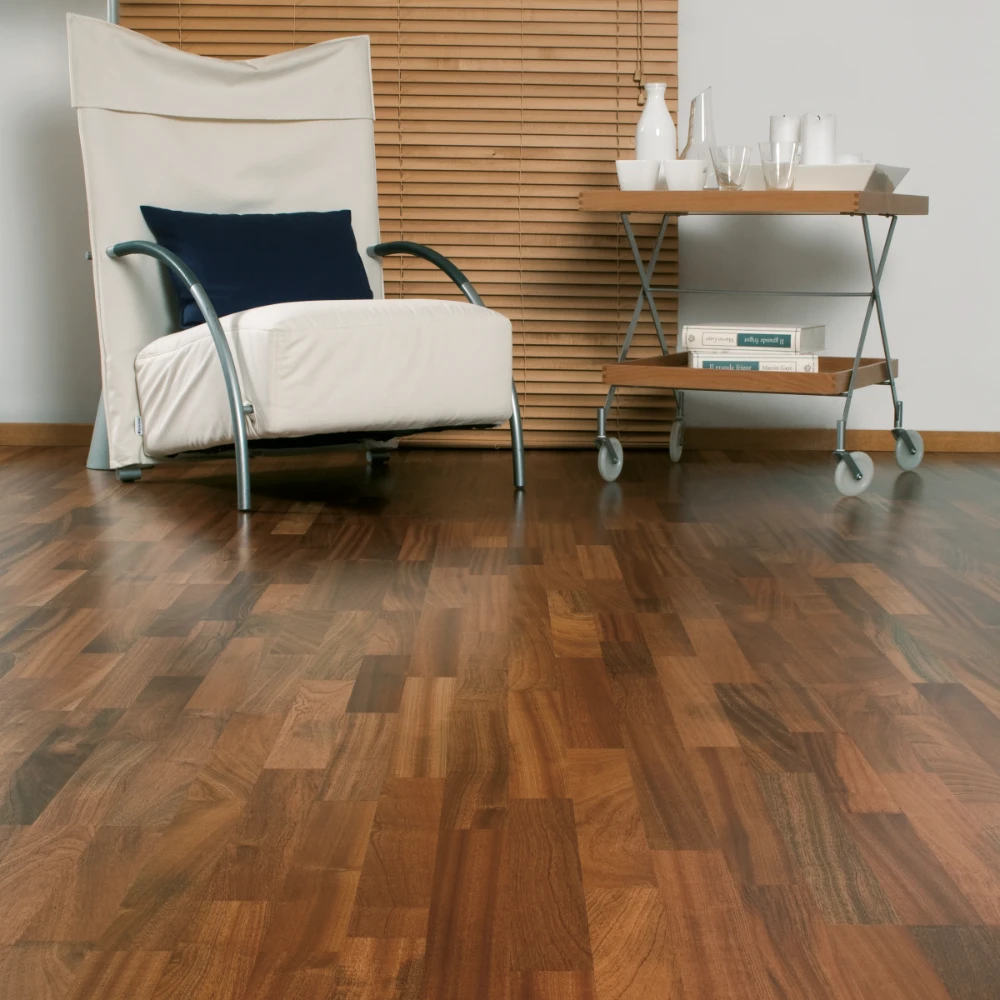 3-skiktsparkett i sapele, tregrenad bräda, lackad, borstad, Elegance-urval