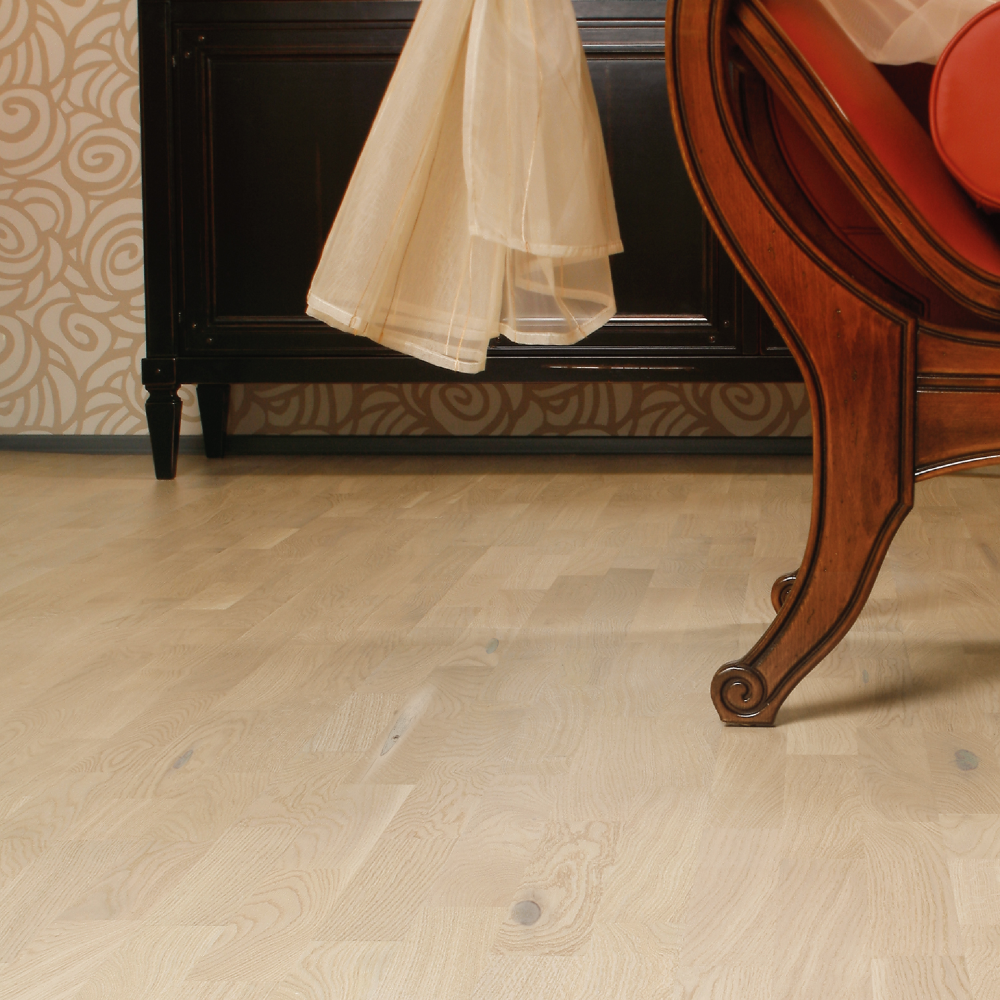 3-skiktsparkett i ek, tregrenad bräda, lackad, borstad, Cottage-urval