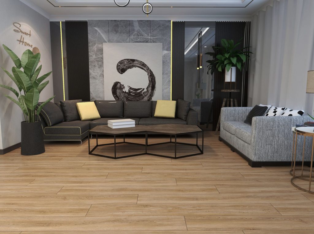 LVT-limmat golvbeläggning med hög slitstyrka, vattentålig och funktionell. Den kan installeras både i bostads- och kommersiella interiörer.