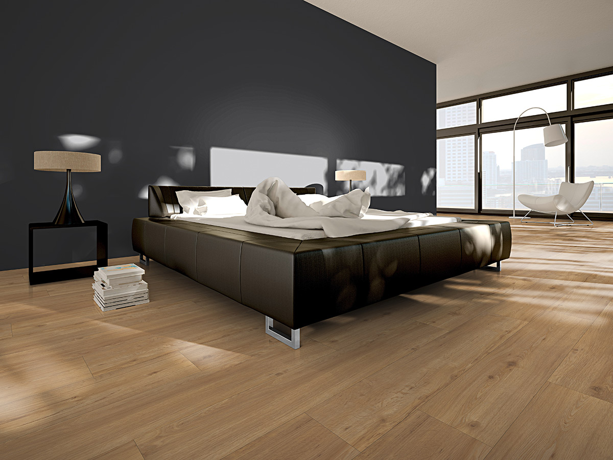 Ett limmat vinylgolv med hög slitstyrka och vattentålighet.