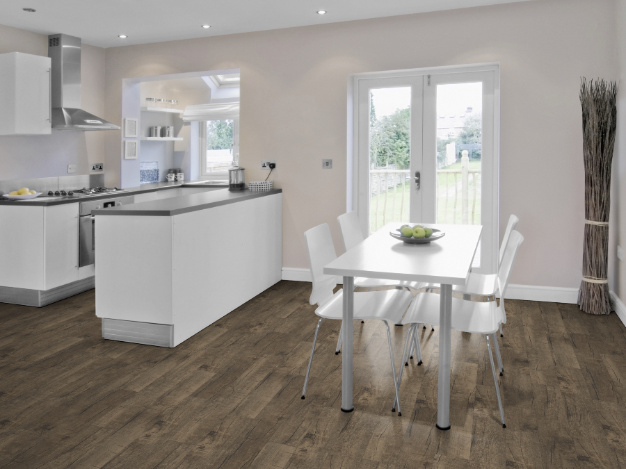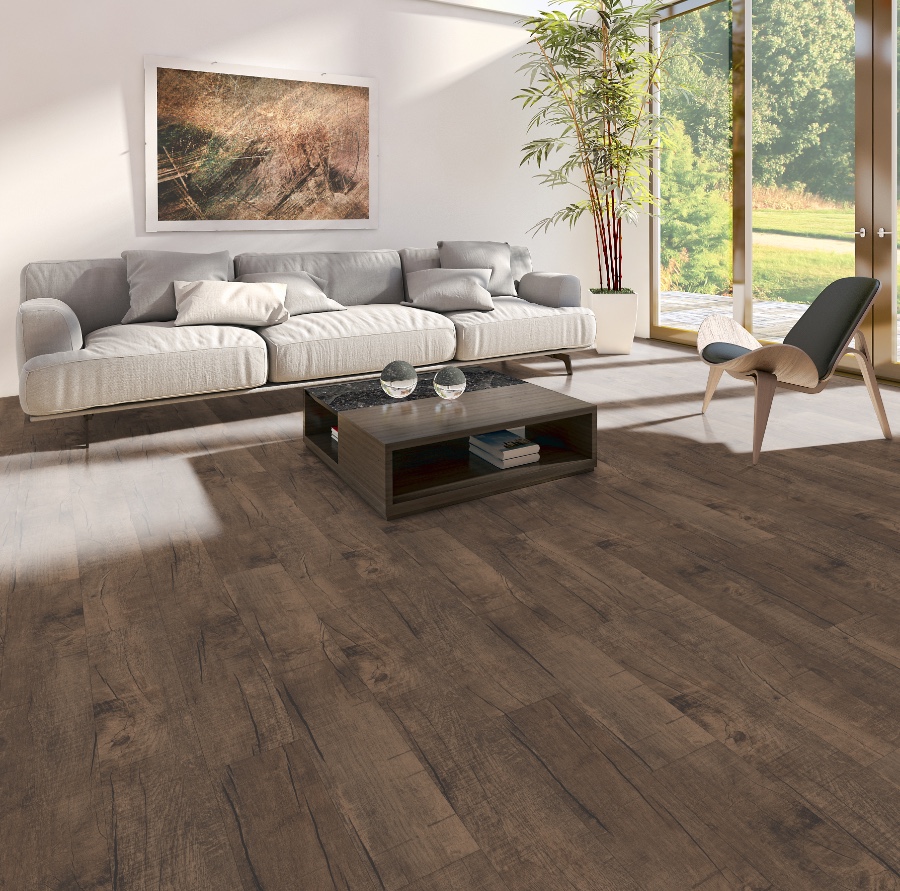 Limmat vinylgolv med hög slitstyrka, vattentålig.